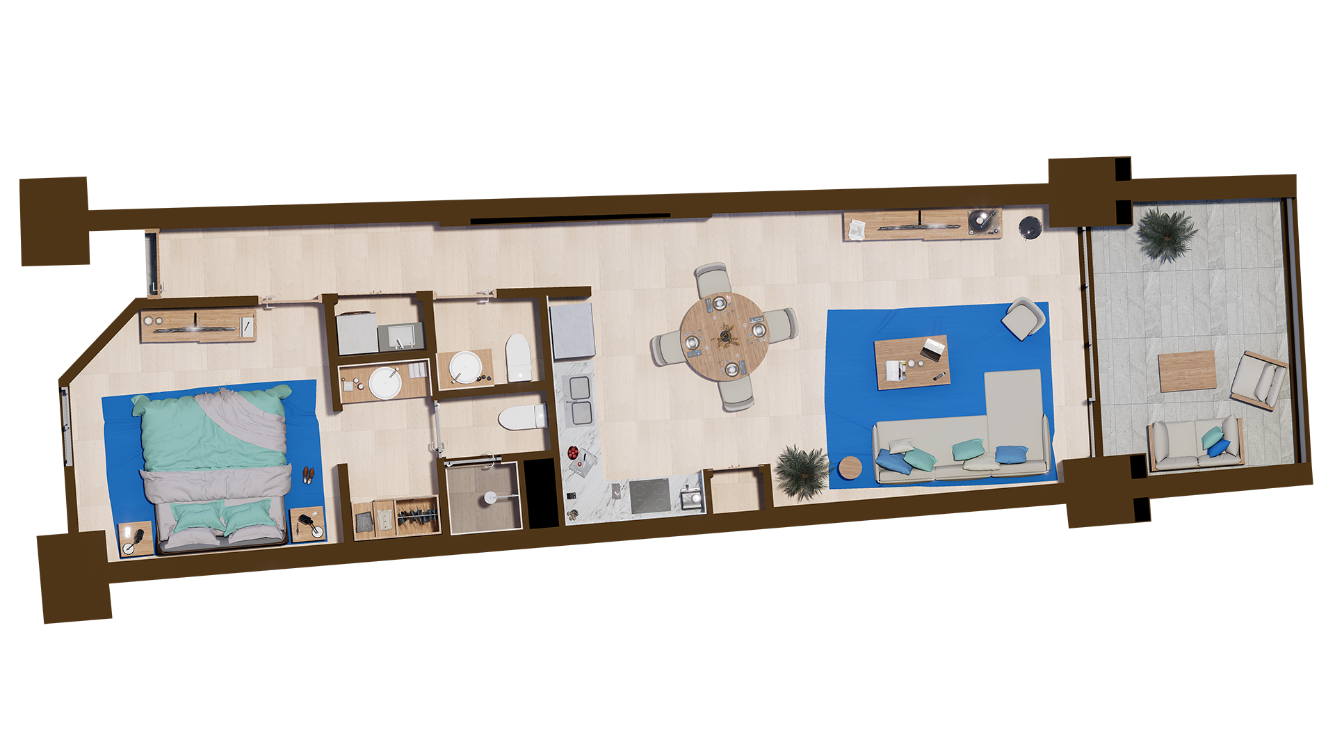 Interior Living Space: 1,402 ft²Outdoor Terrace: 310 ft²